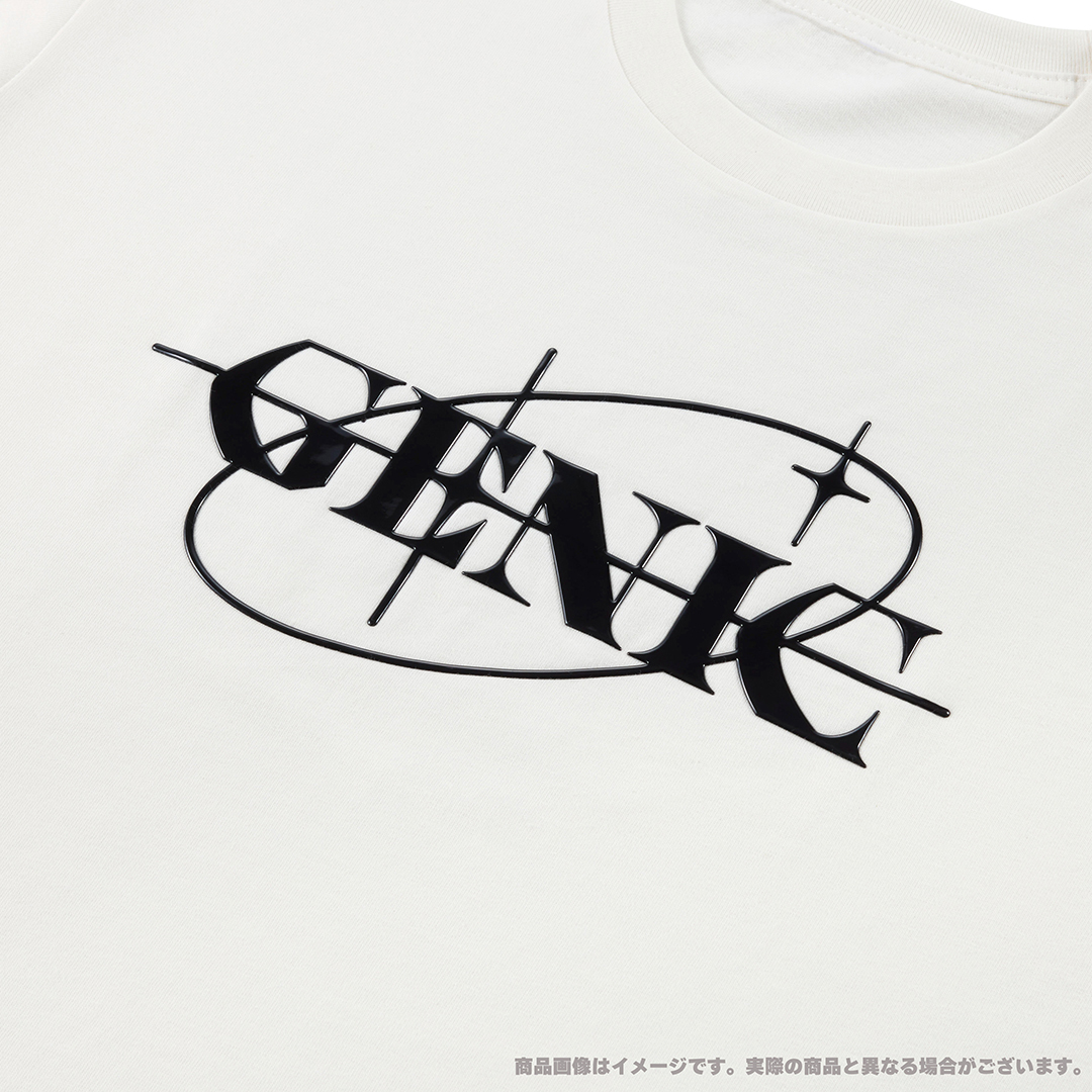 GENICロゴをメタリックな立体プリントで再現したTシャツ。