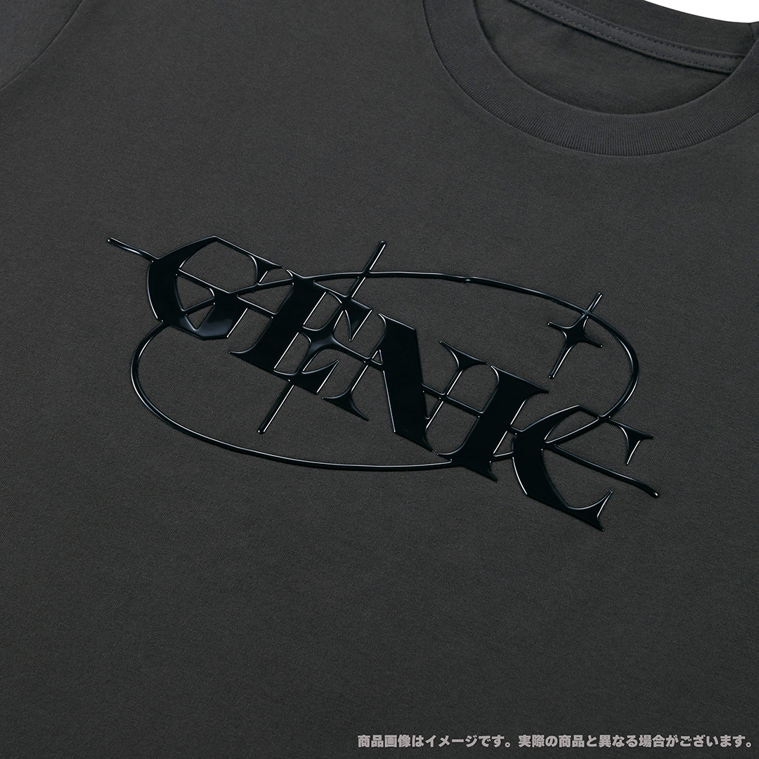 GENICロゴをメタリックな立体プリントで再現したTシャツ。