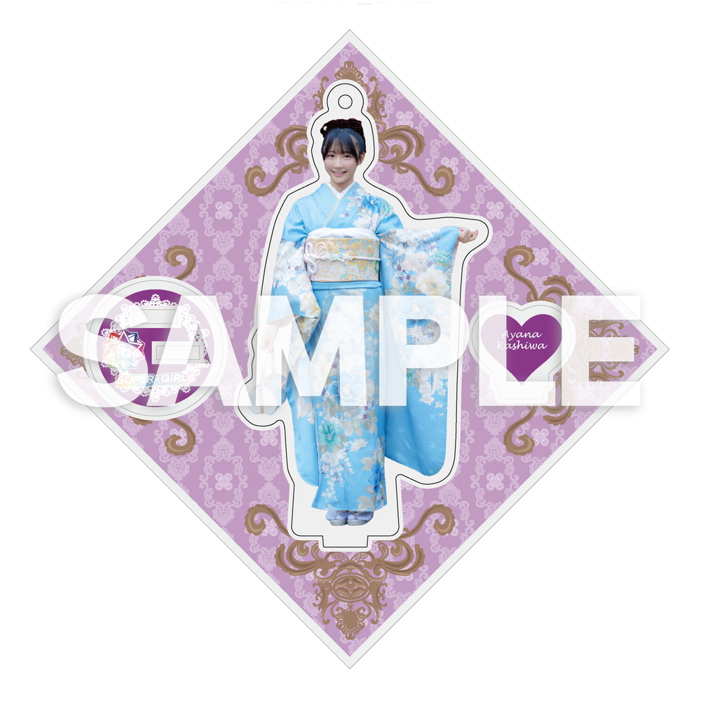 柏綾菜の振り袖アクリルスタンド。ボールチェーンも付いて持ち運びにも便利♪
