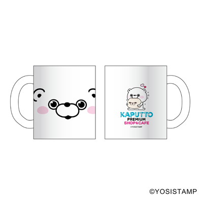ペアで持っても可愛いフェイスマグカップ。かぷっとプレミアムショップ&カフェのロゴも入っています。カフェオリジナルアートにもデザインされているマグカップを具現化しました。