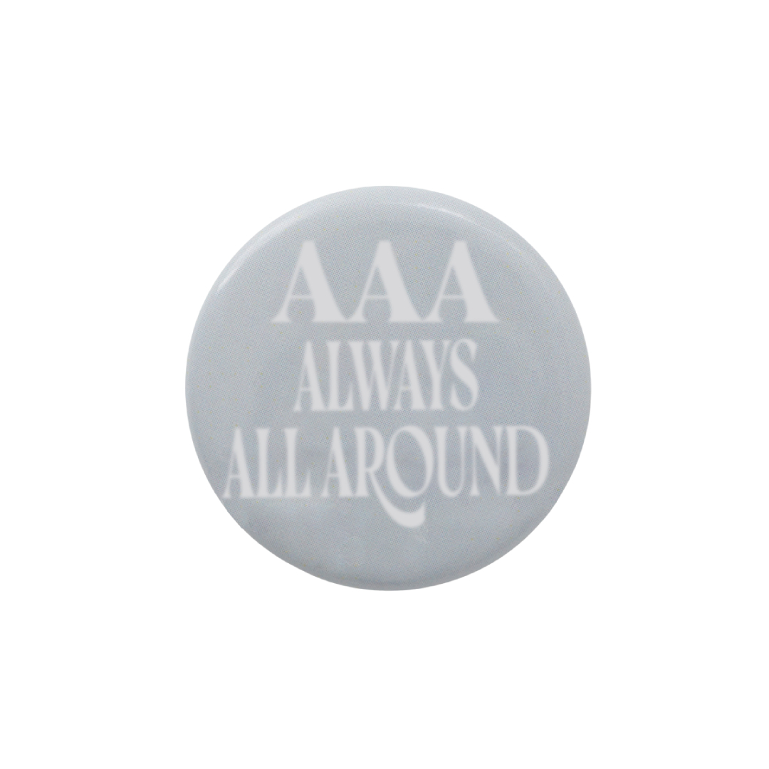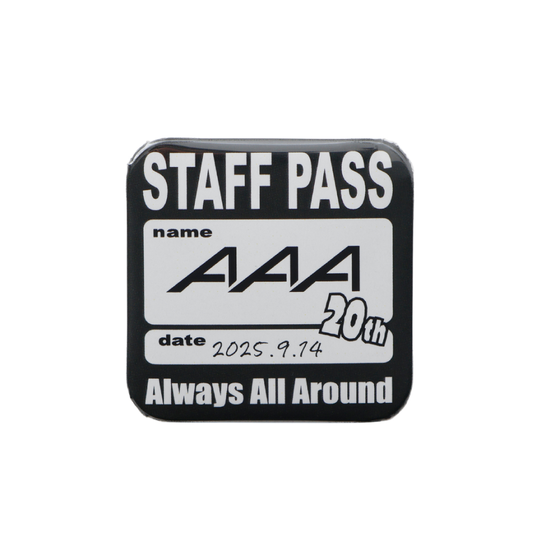 AAA20周年アニバーサリーロゴやモチーフを大小3つのサイズと形状で組み合わせた缶バッジセット。