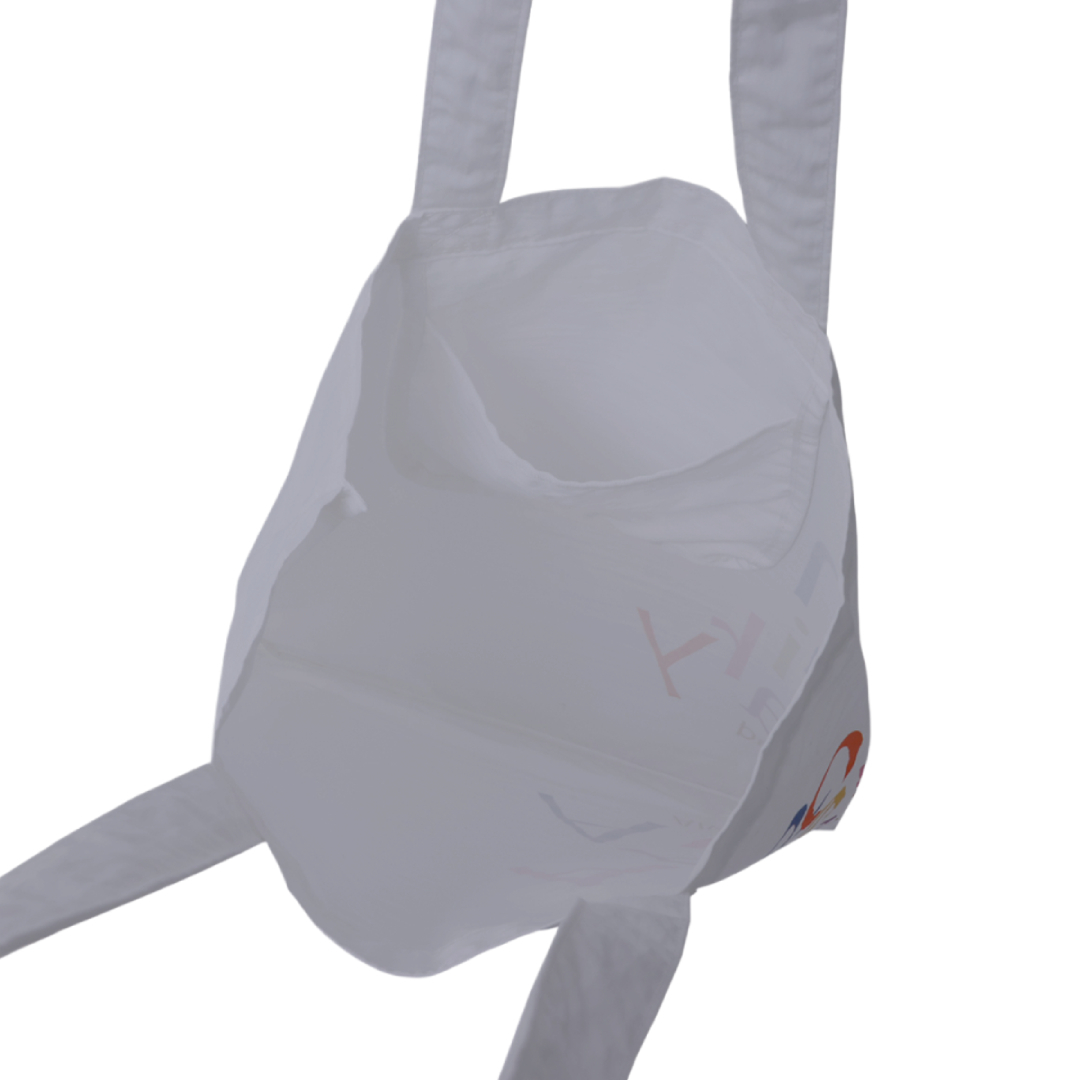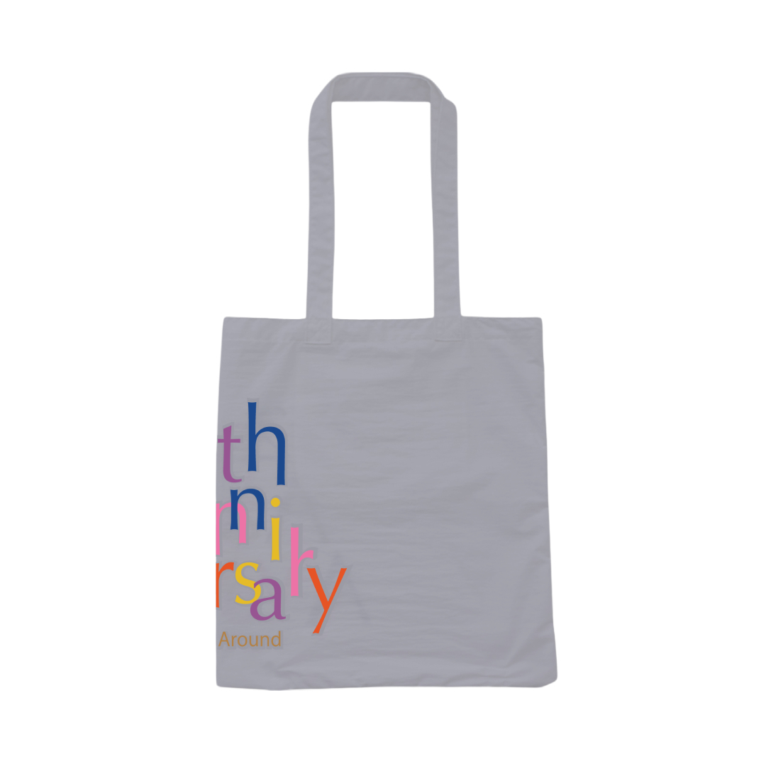 前面から後ろへAAA20周年アニバーサリーロゴが大胆にプリントされたトートバッグです。