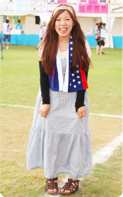 女の子らしいコーデにプラスして、日焼け対策もしっかりこなしてたのがコチラ! 個性的なシルエットでしょ。