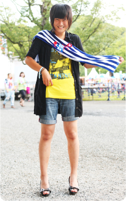 ポップなAAAのタオルを、オトナっぽいカジュアルスタイルに合わせてカッコよく♪ 夏フェスらしいコーデだね☆