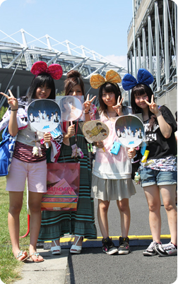仲良し4人組の賑やかコーデ♪ うちわを振って応援してくれてました! 会場で大流行のリボンカチューシャもしっかり着けてます!!