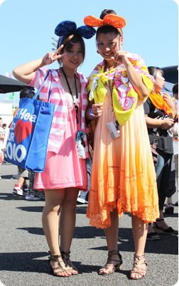 オレンジとピンクのコーデが鮮やか! AAAのグッズの組み合わせが絶妙でした。リボンカチューシャでお祭りっぽさもしっかりプラス☆