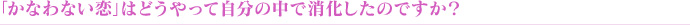 すごい泣きました。泣いて、どうしようもないってわかっていて、好きだっていう気持ちもどうしようもないんだけど、最後の最後には自分からこのままいってもどんどん、どんどん好きの気持ちが大きくなって辛くなっていっちゃうなと思って、自分から終わりにしました。あの時は結構辛かったです。